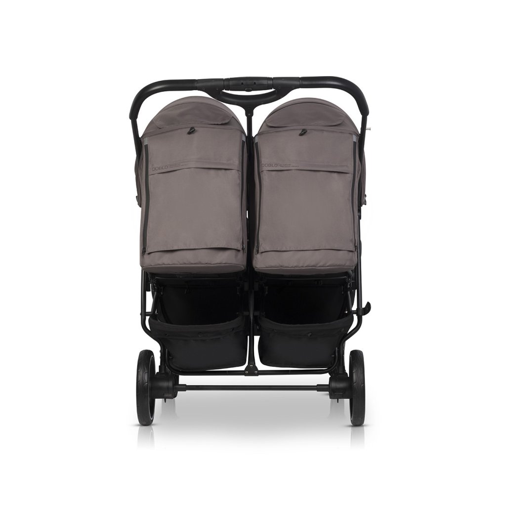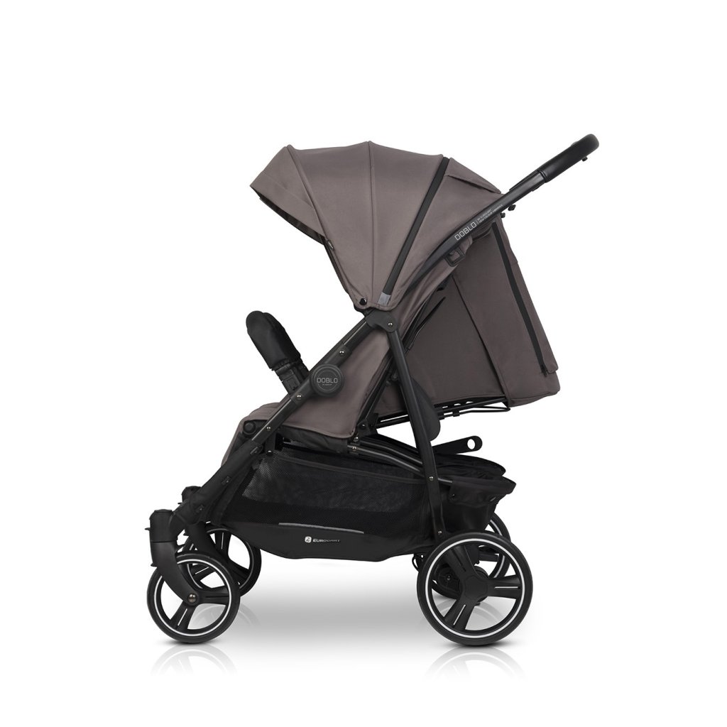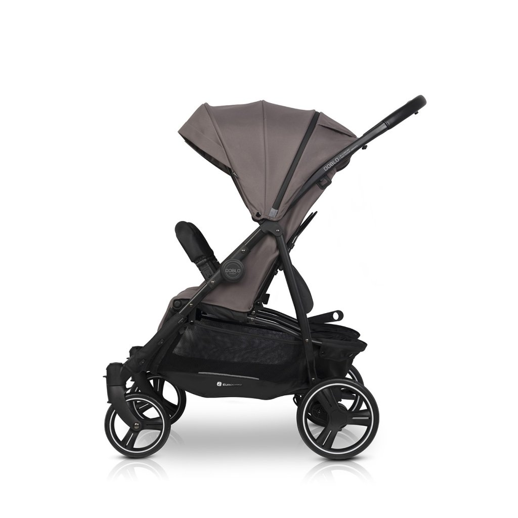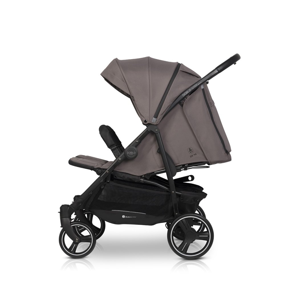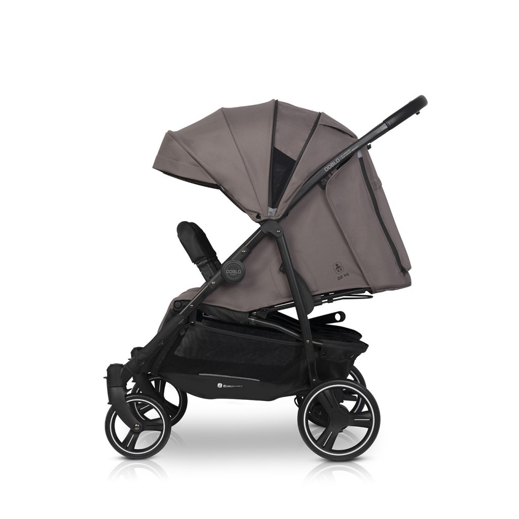 DOBLO značky EURO-CART je dětský kočárek určený pro dvě děti. Skvěle poslouží jak pro dvojčata, tak pro děti narozené po sobě (novorozence a starší dítě do hmotnosti 22 kg). Sedadla jsou určena pro děti o hmotnosti až 22 kg, což umožňuje dlouhou dobu používání kočárku. DOBLO v základní verzi je sportovní kočárek se dvěma sedadly pro děti do 22 kg. Lze jej však přeměnit na multifunkční kočárek 2 v 1 pro dvojčata, pokud si dodatečně zakoupíte dvě hluboké korby a odpovídajícím způsobem upravíte sedadla. Může také sloužit jako kombinace jednoho sportovního sedadla pro starší dítě do 22 kg a jedné korby pro mladší dítě do hmotnosti 9 kg. To vše činí z DOBLO značky EURO-CART jeden z nejvšestrannějších kočárků na trhu. Kočárek DOBLO má odpružení všech kol. Přední kola jsou otočná s možností blokace pro přímou jízdu. DOBLO vás překvapí svou ovladatelností a snadným nakláněním. Mnoho uživatelů hodnotí jeho ovladatelnost jako pohodlnější než u mnoha kočárků určených pro jedno dítě. Obáváte se, že kočárek se dvěma sedadly vedle sebe může být příliš široký? Zbytečně. Šířka kočárku DOBLO je 74 cm, takže pohodlně projede prakticky každými dveřmi. To však neznamená, že sedadla jsou úzká. Tuto šířku bylo dosaženo ohnutím zadních nohou kočárku. Díky tomu zadní kola nevyčnívají mimo obrys rámu. Obě sedadla kočárku DOBLO jsou zcela nezávislá. Mají samostatná nastavení opěradla, opěrky nohou a stříšky. Samostatné jsou také bezpečnostní madla a nánožníky. Díky tomu může starší dítě pohodlně sedět na svém sedadle, zatímco vedle něj lze namontovat korbu na rozložené sedadlo se sundanou sluneční clonou. V tomto uspořádání jsou děti čelem k sobě a rodič vedoucí kočárek vidí mladší dítě v korbě. Za slunečných dní jistě oceníte velké sluneční stříšky s přídavnými odepínacími sekcemi a slunečními clonami. Vnitřní strany stříšek jsou černé, aby ještě lépe zachytávaly sluneční paprsky. Tkaniny mají filtr UV50+. Bezpečnost vašich dětí zajišťuje bezpečnostní certifikát potvrzující shodu kočárku s normou EN 1888-1 a EN1888-2:2018. Sedadla jsou vybavena 5bodovými bezpečnostními pásy.