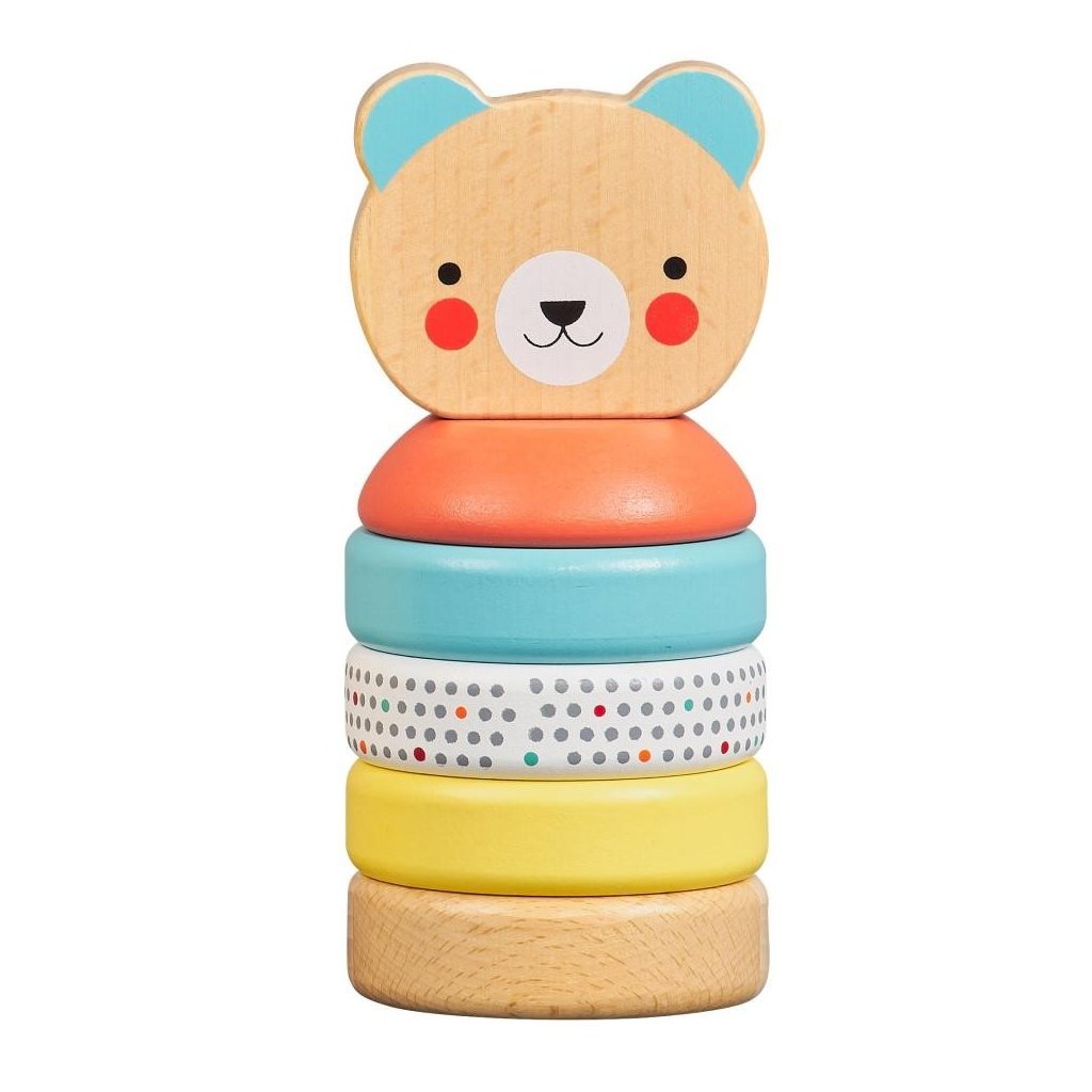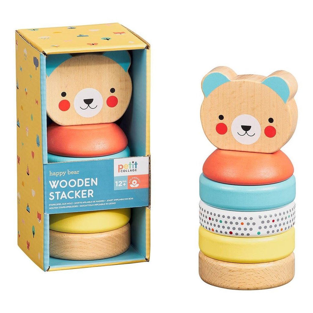 Jeden, dva, tři, čtyři, pět – poskládejte dřevěné dílky na sebe a vytvořte tak roztomilého medvídka. Krásná barevná skládačka s typickými barvami a vzory Petitcollage.