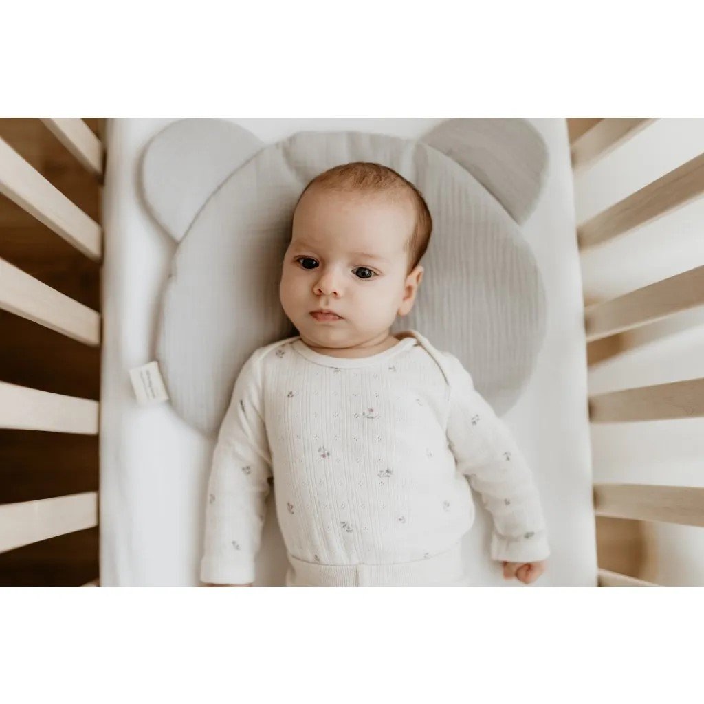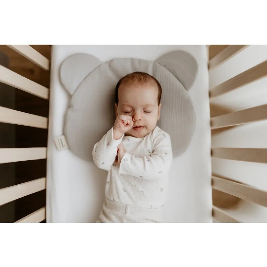 Roztomilý dětský polštářek s ouškama Teddy Bear Sleepee Grey krásně doplňuje mušelínovou kolekci. Je měkký, pohodlný a ideálně nízký. Díky tomu je vhodný jako podpora hlavičky i pro malé děti. Polštář ve tvaru medvídka je ručně šitý z příjemné sametové látky s antialergenní silikonovou výplní. Mušelínová bavlna je prodyšná a skvěle odvádí vlhkost. Díky tomu je polštářek ideální zejména v letních a jarních měsících. Využít se ale dá po celý rok.